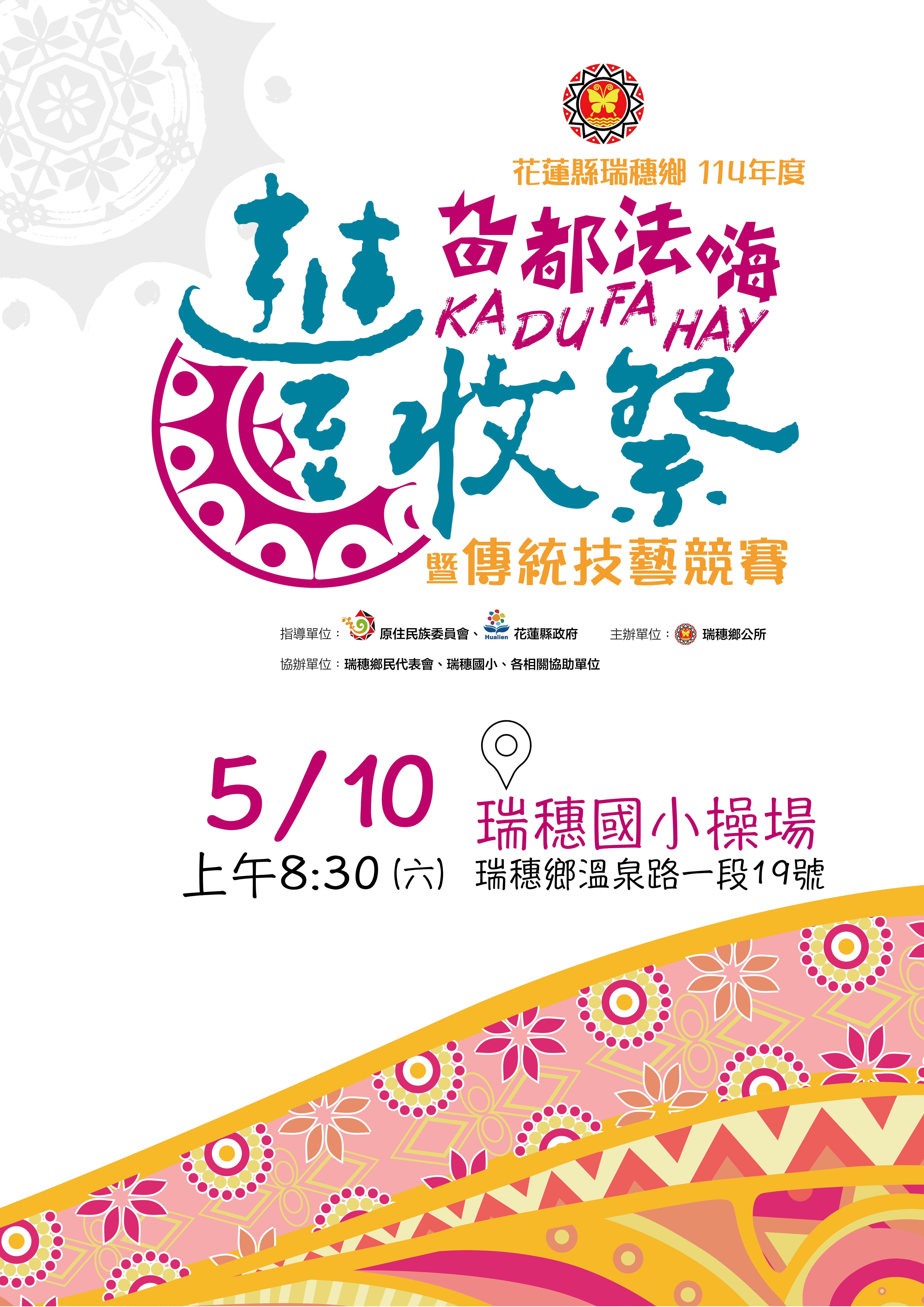 (活動公告)花蓮縣瑞穗鄉公所辦理「114年瑞穗豐收季-旮都法嗨暨傳統技藝競賽活動」