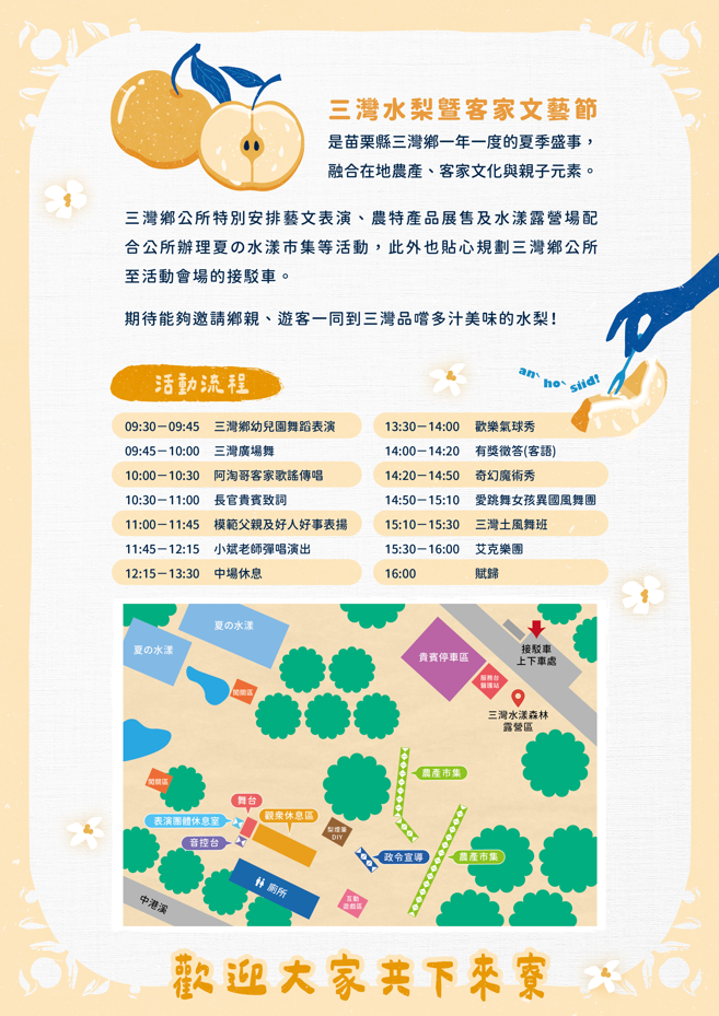 【轉知】苗栗縣三灣鄉公所辦理「2025三灣水梨暨客家文藝節」