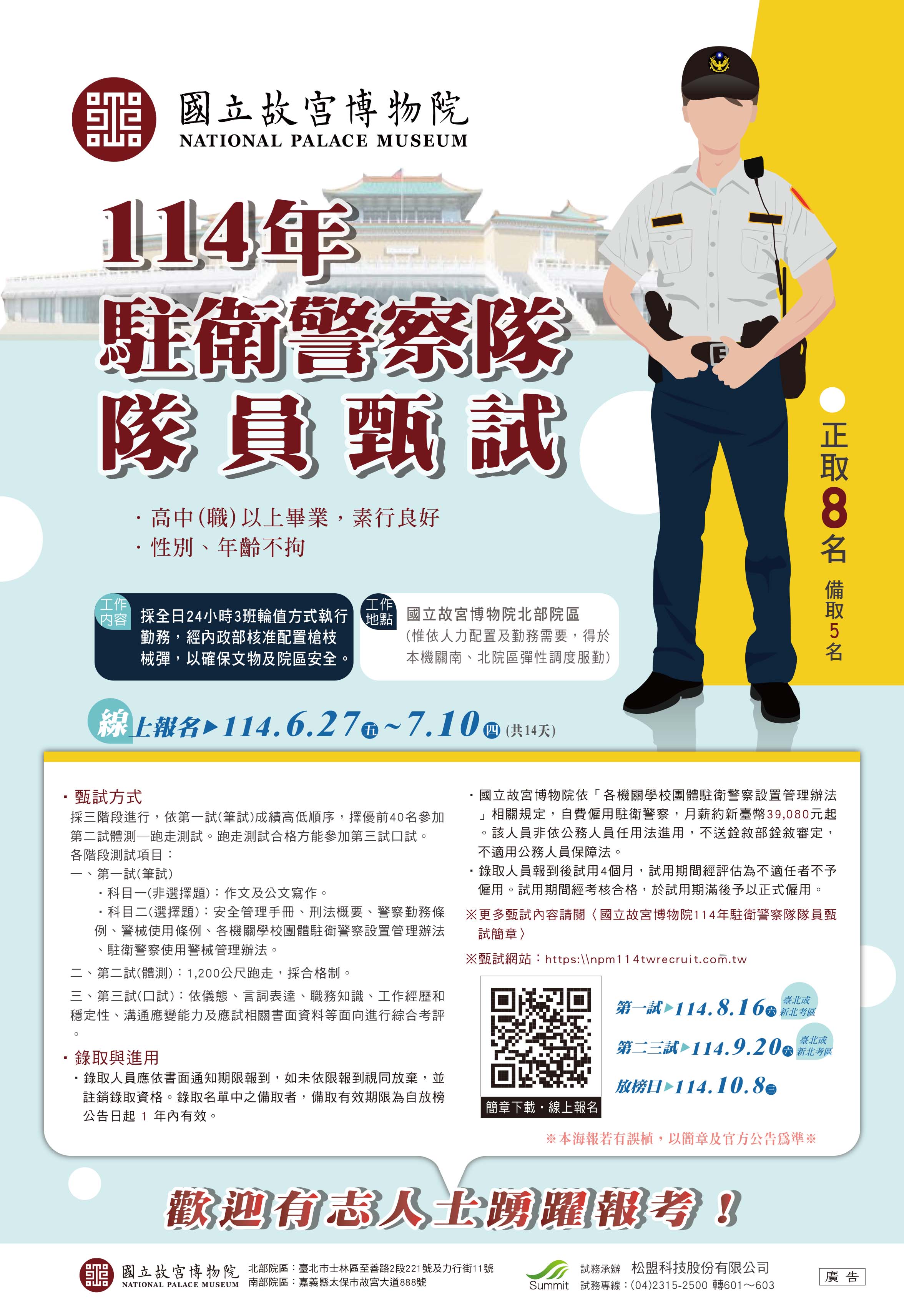 二、 甄試簡章自即日起公告於甄試網站(https://npm114.twrecruit.com.tw),電子檔免費下載,不另販售紙本。