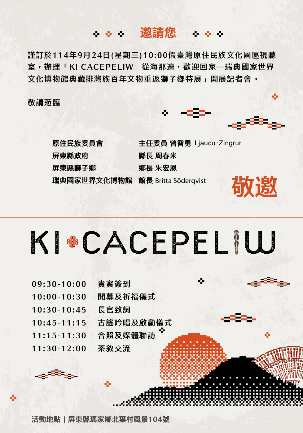 屏東縣獅子鄉公所辦理「Ki cacepeliw 從海那邊.歡迎回家—瑞典國家世界文化博物館典藏排灣族百年文物重返獅子鄉特展」記者會
