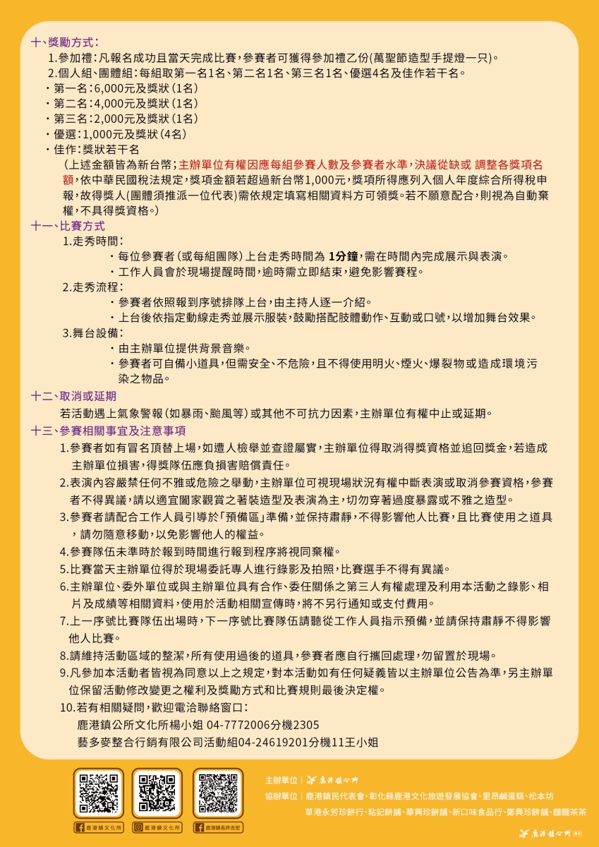 【轉知】彰化縣鹿港鎮公所辦理「2025鹿港四季紅秋收系列活動-『變裝總動員:搞怪來報到!』變裝比賽」