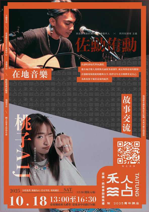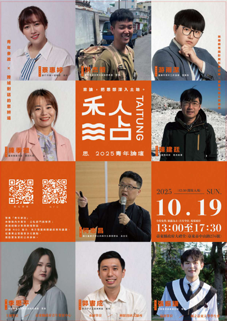 【轉知】臺東縣政府青年發展中心辦理「黏TaiTung.聲--2025青年講座」暨「黏TaiTung.思--2025青年論壇」系列活動
