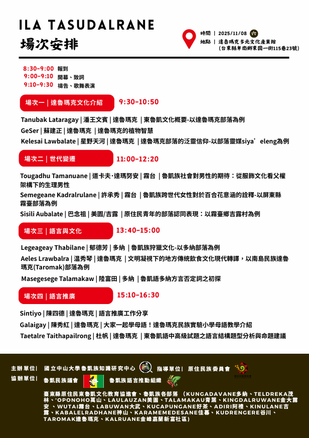 【函轉】國立中山大學魯凱族知識研究中心辦理「2025魯凱學—ILA TASUDALRANE 共築一條路」
