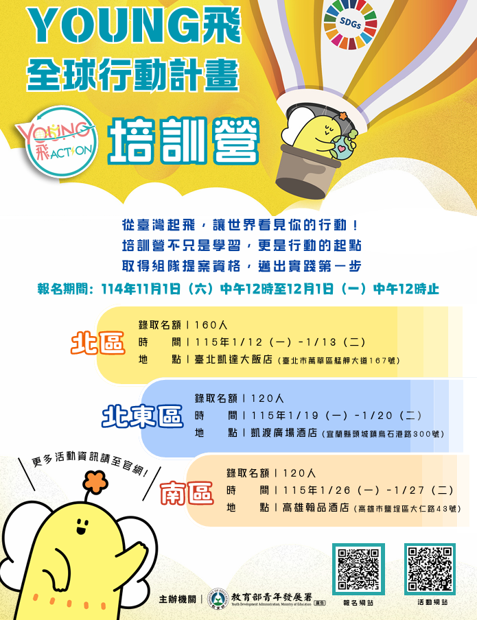 【轉知】教育部青年發展署「115年Young飛全球行動計畫」培訓營