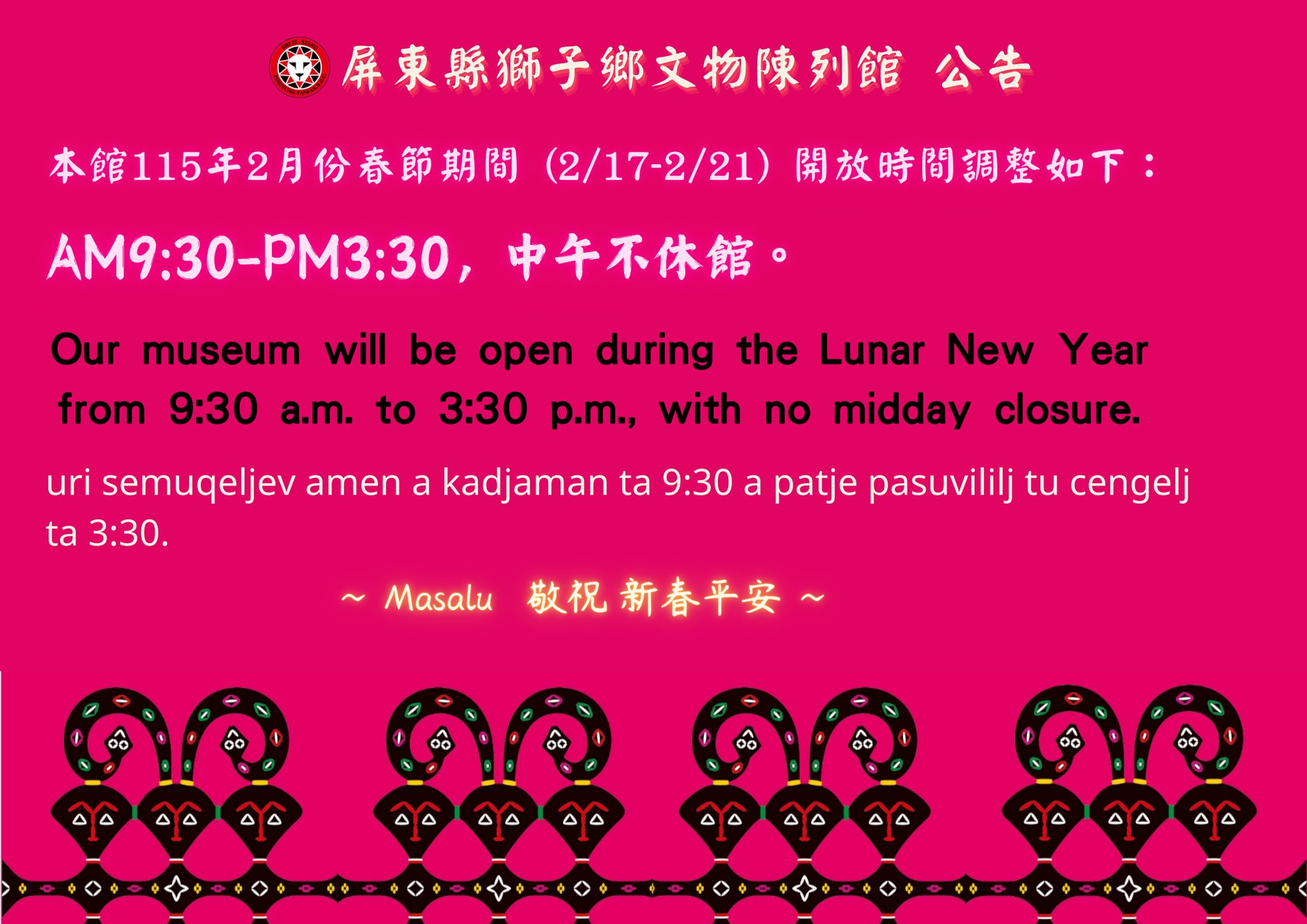 【轉知】屏東縣獅子鄉公所辦理「Ki cacepeliw 從海那邊.歡迎回家—瑞典國家世界文化博物館典藏排灣族百年文物重返獅子鄉特展」