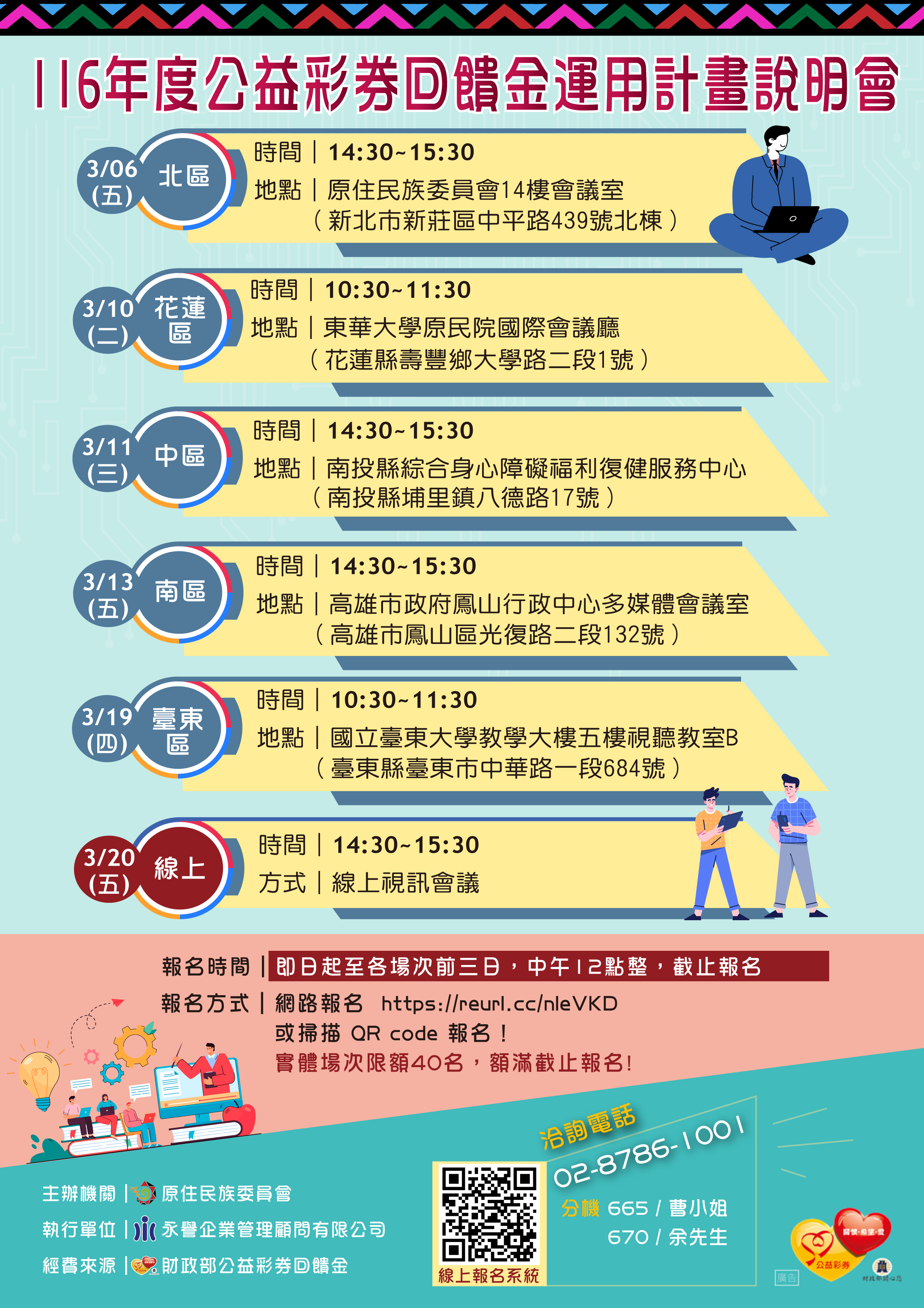 原住民族委員會辦理「116年度公益彩券回饋金運用計畫說明會」: